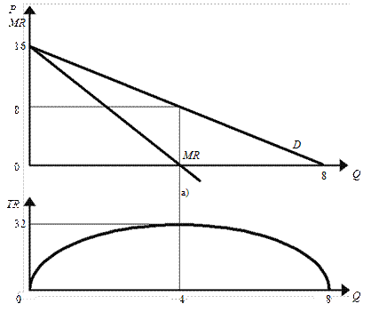 Линия предельного дохода, как видно из графика, пересекает ось абсцисс точно в середине между началом оси и кривой спроса. Такая закономерность имеет место всегда, если кривая спроса имеет вид прямой линии. Это объясняется математическими закономерностями эластичности спроса.