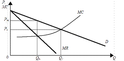 Таким образом, перерастание конкурентного рынка в монопольный сопровождается превращением рыночной цены в монопольную, а нормальной, средней рыночной прибыли в монопольную, которая включает монопольную сверхприбыль. Монополия по сравнению с совершенной конкуренцией неизбежно ограничивает выпуск продукции и повышает ее цену.