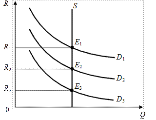 Расширение (с D 2 до D 1) и сокращение (с D 2 до D 3) спроса на землю (рис. 5.8) приводит к значительным изменениям величины ренты (с R 2 до R 1 и с R 2 до R 3).