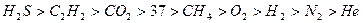 Растворимость газов в воде уменьшается в следующем ряду (t = 20ºC):