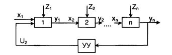 ). Функционирование каждого звена обычно не полностью структуризировано, то есть нам не всё известно о звене. Это высказывание может быть представлено, как неконтролируемое воздействие Z на каждое звено. На основе результатов последовательных вычислений (