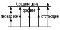 Рассмотрим пример. На рынке присутствует 5 предприятий с разной себестоимостью продукции: одно передовое, три средних и одно отстающее предприятие. (↑ - предполагаемая цена, складывается из себестоимости и прибыли.)