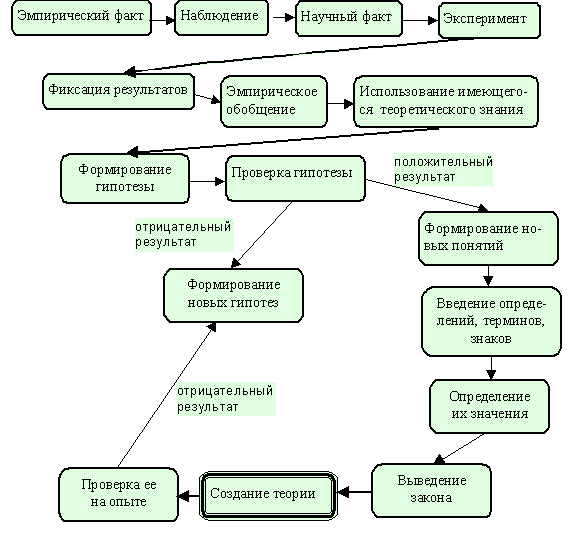 Определив формы научного знания и методы научного познания, мы можем схематично представить весь процесс научного познания в виде некоторой схемы (см. рис. 5).