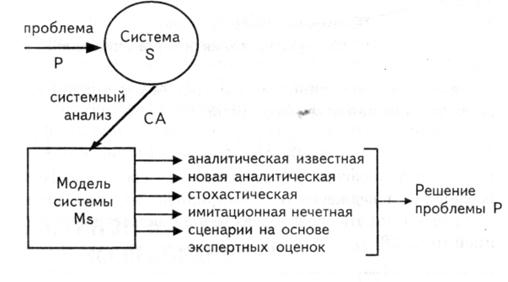 Системный анализ является продолжением системного подхода. Построенная система S для решения возникшей проблемы Р преобразуется в определенную, нужную для решения Р модель Ms (рис. 16).