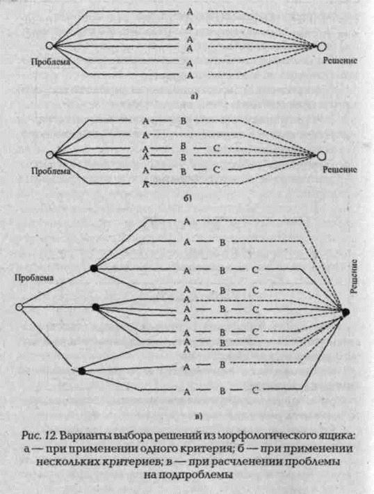 Возможны следующие пути выбора решений из морфологического ящика (рис. 12):