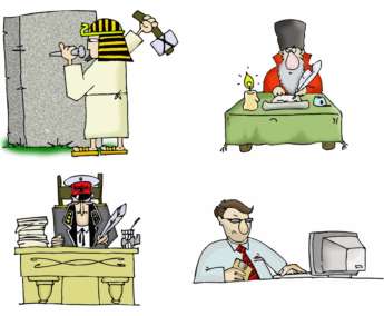 Со временем работа с документами, включая их создание, контроль и хранение, вылилась в определенный вид деятельности - так называемое делопроизводство. История документов и делопроизводства тесно связана с эволюцией материалов, на которых записывались документы, с развитием технологии их передачи, а также с изменением правил их создания и оформления (рис. 1.1).