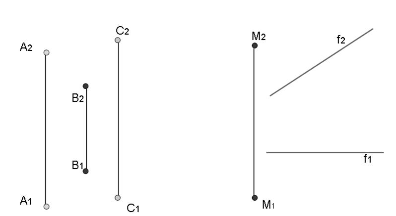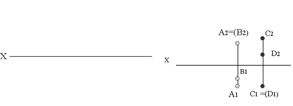 Точки их видимого пересечения являются конкурирующими и служат для определения видимости прямых относительно плоскостей проекций.