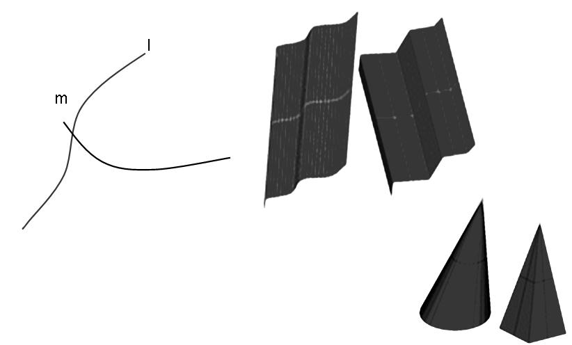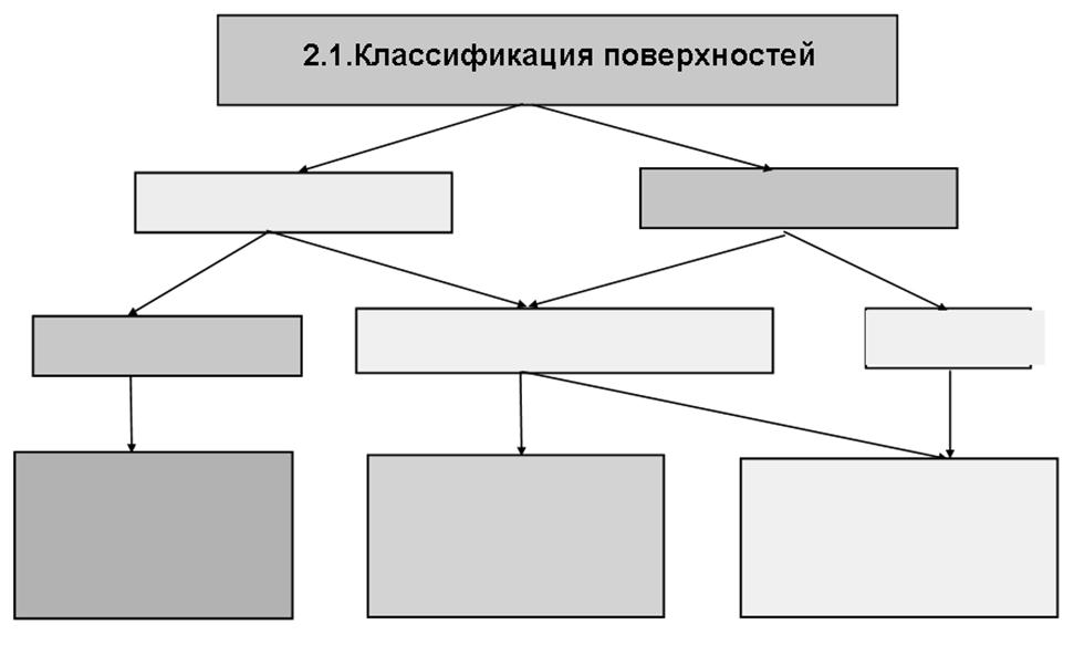 • Точки А и В лежат на контурных линиях поверхности и служат границами видимости линий, принадлежащих поверхностям. Такие точки называются характерными или опорными для заданной поверхности. К характерным точкам поверхности относятся также точки экстремальные, т.е. самые низкие и самые высокие, самые близкие и самые удаленные от плоскости проекций. Положение любой точки поверхности определяется положением и видом линии, принадлежащей этой поверхности, а линия принадлежит поверхности, если она проходит по необходимому количеству точек, лежащих на этой поверхности(основная позиционная задача комплексного чертежа).