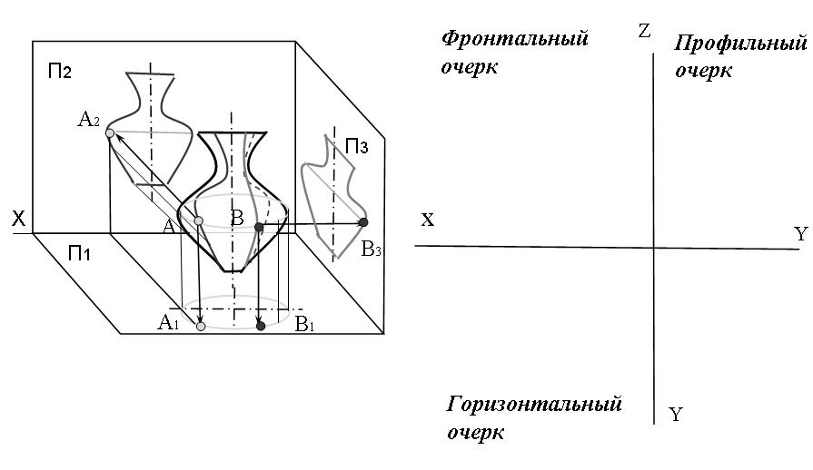 Главные линии сферы: Главный фронтальный меридиан; Экватор; Главный профильный меридиан.