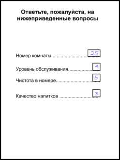 Предположим, в офисе отеля проводится анкетирование проживающих для оценки уровня обслуживания на разных этажах. Каждому жителю отеля в его номере оставляется анкета, которую он должен заполнить (рис. 3.8).