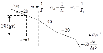 Построим л.а.х. разомкнутой системы с передаточной функцией в разомкнутом состоянии: