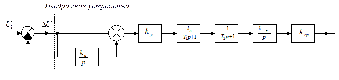 Для устранения этого недостатка разработан другой путь повышения порядка астатизма, который не дает заметного уменьшения запаса устойчивости. Этот путь заключается в применении изодромных устройств, в которых дополнительное интегрирующее звено включается не последовательно с сигналом ошибки, а параллельно сигналу ошибки.