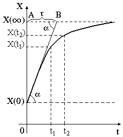 Характер изменения функции x (t) представлен на рис. 2.1 (убывающая или нарастающая экспонента).