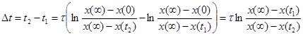 , за который функция x (t) изменяется от значения x (t 1) до значения x (t 2). Запишем значение функции в точках t 1 и t 2: