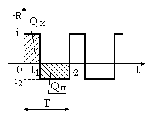 Доказать этот факт можно, рассмотрев диаграмму тока, протекающего через резистор (рис.2.8). Очевидно, что i 1 t 1 - это заряд Qи, переносимый через емкость за время действия импульса на входе, а i 2(t 2- t 1) – заряд Qп, переносимый через емкость за время паузы между импульсами, т.е. в обратном направлении. Тогда общий заряд, переносимый через емкость за время, равное периоду импульса будет равен: