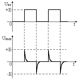 Рис. 2.9. Диаграммы входного и выходного напряжений дифференцирующей RC-цепи.