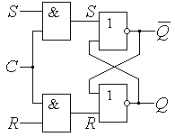В качестве самостоятельных устройств асинхронные RS-триггеры находят ограниченное применение, но являются базовыми схемами для более сложных триггерных устройств. В устройствах цифровой обработки находят применение тактируемые RS-триггеры, которые называются еще синхронными. Эти триггеры, кроме входов установки R и S, имеют вход разрешения записи C. Срабатывание синхронного триггера происходит только при наличии активного сигнала на этом входе. Работа синхронного RS-триггера задается таблицей переходов:
