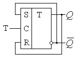 Т-триггер. Триггер T-типа является одновходовым устройством с двумя устойчивыми состояниями, изменяющимися каждый раз на противоположные при подаче на вход Т управляющего сигнала. Работа Т-триггера задается таблицей переходов: