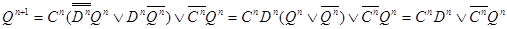 Запишем СДНФ для функции Qn +1 (неопределенные состояние не учитываются)