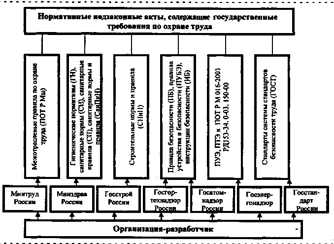 Нормативные подзаконные акты по охране труда включают в себя документацию целого ряда ведомств (рис. 3). Наиболее информативноемким видом указанной нормативной документации является система стандартов безопасности труда (ССБТ).