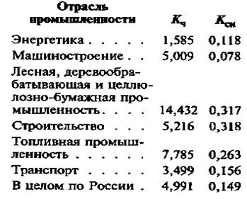 Ниже представлены значения Кч и Кск для некоторых отраслей промышленности по данным за 2001 г. [2].