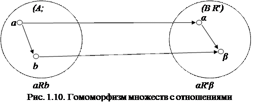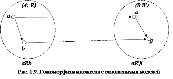 Аналогично определяется гомоморфизм (изоморфизм) множеств с отношениями - моделей (A; R 1, R 2, …, R n) (B; R 1', R 2', …, R n').