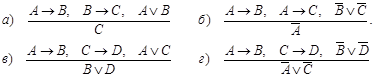 Перечислим наиболее употребляемые схем логически правильных рассуждений: