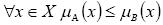 Включение. Пусть A и B - нечеткие множества на универсальном множестве X. Говорят, что A содержится в B, или B включает A, т.е. A