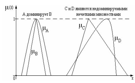 Рис. 2.6.Операция включение (доминирование) нечетких множеств