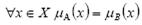 Равенство. Пусть A и B -нечеткие множества на универсальном множестве X. Говорят, что A и B равны, т.е. A=B, если