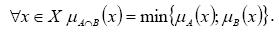 B, содержащееся одновременно и в A, и в B с функцией принадлежности:
