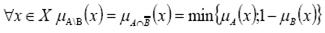 Разность нечетких множеств A и B (рис. 2.11), заданных на универсальном множестве X, - это нечеткое множество A\B=A