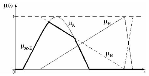 Дополнение. Пусть A и B – нечеткие множества с множеством принадлежностей характеристических функций