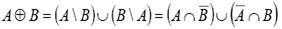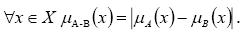 Симметрическая разность нечетких множеств A и B, заданных на универсальном множестве X, - это нечеткое множество A-B с функцией принадлежности, заданной следующим образом: