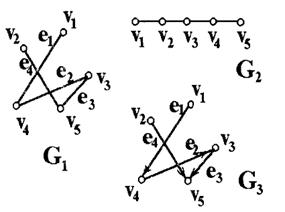 • двумя множествами поименованных вершин Vl={v1, v2, v3, v4, v5} и поименованных ребер Е1= {e1,е2,e3,е4} (в строгом смысле требуется установление отношения инцидентности ребер соответствующим вершинам);