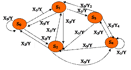 X = {X1, X 2, X3 }; Y = { Y1, Y2, Y3, Y4 }; S = {S0, S1, S2, S3, S4}