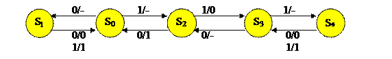 Рассмотренный в данном примере автомат не полностью определен: не имеющие значения выходы отмечены тире.