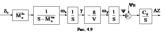 Структурная схема системы стабилизации боковым смещением с законом (4.33) показана ниже.