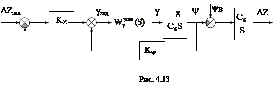 uде Wкy(S) – ПФ корректирующего устройства (КУ), определяющего закон формирования gзад. Пренебрегая динамикой привода, ПФ статической системы стабилизации угла крена можно записать в виде: