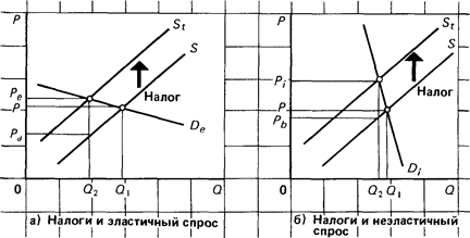 Рис. 5.6. Эластичность спроса и распределение налога с продаж
