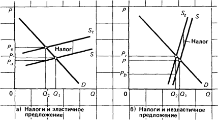Рис. 5.7. Эластичность предложения и распределение налога с продаж