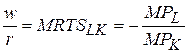 выпуск может быть увеличен (при тех же затратах) путем замещения капитала трудом. Наоборот формула