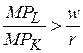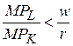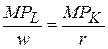 выпуск может быть увеличен (при тех же затратах) путем замещения труда капиталом. При выполнении равенства люба изменение комбинации применяемых ресурсов не улучшит положения предприятия.