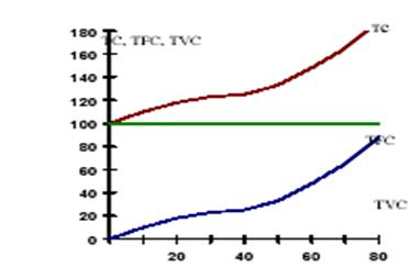 Сумма постоянных и переменных издержек образует валовые издержки. Общие (валовые) издержки (total cost - TC) - совокупные издержки выпуска определенного объема продукции. Поскольку в краткосрочном периоде ряд вводимых факторов производства (прежде всего, капитал) не меняется, какая-то часть суммарных издержек также не зависит от количества примененных единиц переменного ресурса и от объема выпуска товаров и услуг.