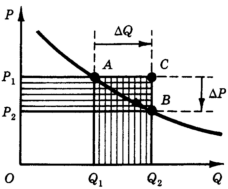 Это изменение складывается под действием двух обстоятельств. С одной стороны, вследствие роста объема продаж выручка увеличивается на величину P 1(Q 2 - Q 1). С другой стороны, снижение цены уменьшает выручку на величину Q 2(P 1 - P 2). Таким образом, приращение общей выручки можно представить в виде