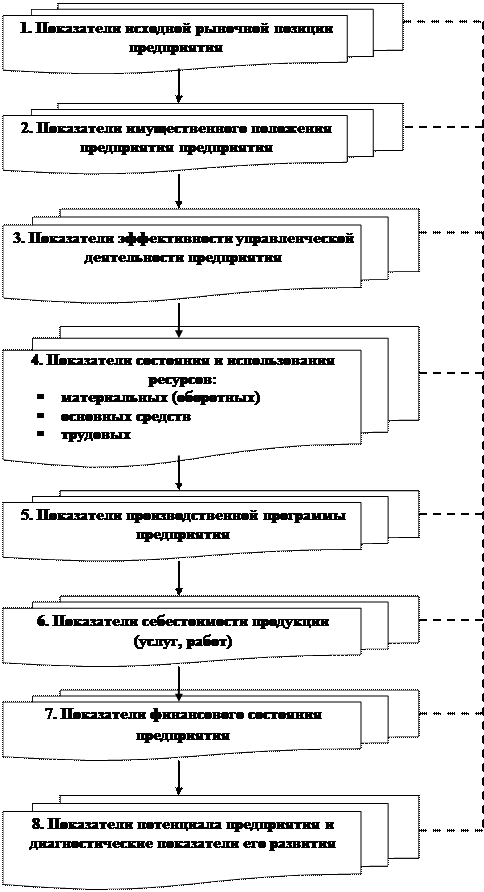 К последней подсистеме 8 относятся показатели, которые характеризуют потенциал предприятия и уровень развития предприятия. Поскольку, как уже отмечалось ранее, потенциал - это понятие многоаспектное, то обычно выделяют конкретные его стороны, например трудовой потенциал, производственно-технологический потенциал и др. Так при анализе трудового потенциала предприятия используют достаточно большую совокупность показателей. Вот некоторые из них: средний возраст работников в целом и по отдельным профессиональным группам; удельный вес работников наиболее производительной группы в общем числе работников предприятия; средний стаж работы на данном предприятии и по профессии; количество претензий, предъявляемых работниками предприятия к администрации и др.