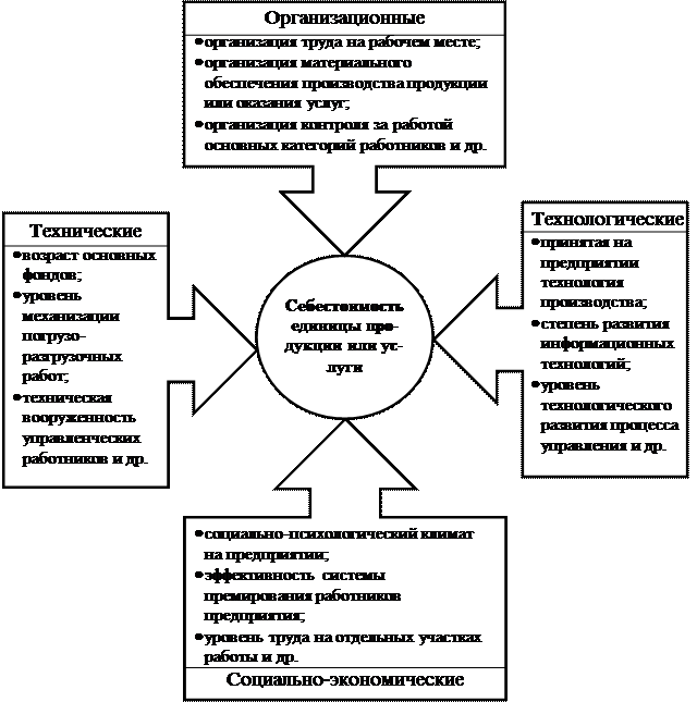 Рис. 7.1.Факторы влияющие на себестоимость продукции