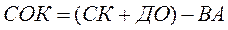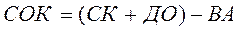 Собственный оборотный капитал (СОК) – собственные оборотные средства (СОС), или чистые оборотные активы (ЧОА), показывает, какая сумма оборотных активов сформирована за счет собственного капитала. Внеоборотные и оборотные активы имеют свои источники формирования. Внеоборотные активы (ВА) формируются, как правило, за счет собственного капитала и за счет долгосрочных заемных средств (долгосрочных обязательств – ДО). При этом не исключается возможность финансирования внеоборотных активов за счет краткосрочных кредитов и займов. Оборотные активы формируются как за счет собственного капитала, так и за счет заемных средств, а именно краткосрочных кредитов и займов, кредиторской задолженности и прочих краткосрочных обязательств (КО). Величину собственного оборотного капитала следует рассчитывать по формуле: