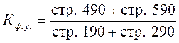 Коэффициент финансовой устойчивости (Кф.у.) показывает, какая часть активов финансируется за счет собственного капитала и долгосрочных обязательств, т.е. устойчивых пассивов. Рассчитывается по формуле