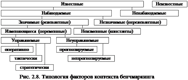 В процессе бенчмаркинга часто наблюдается несоответствие опыта других компаний контексту фирмы бенчмаркера. Трудности, которые возникают при переводе результатов бенчмаркинга в культурный, структурный, стратегический, географический, институциональный и предпринимательский контекст собственного предприятия, помогает преодолеть тщательный анализ внешней и внутренней среды объектов бенчмаркинга и раскрытие их обусловленности факторами среды через детальное и полное описание контекста.